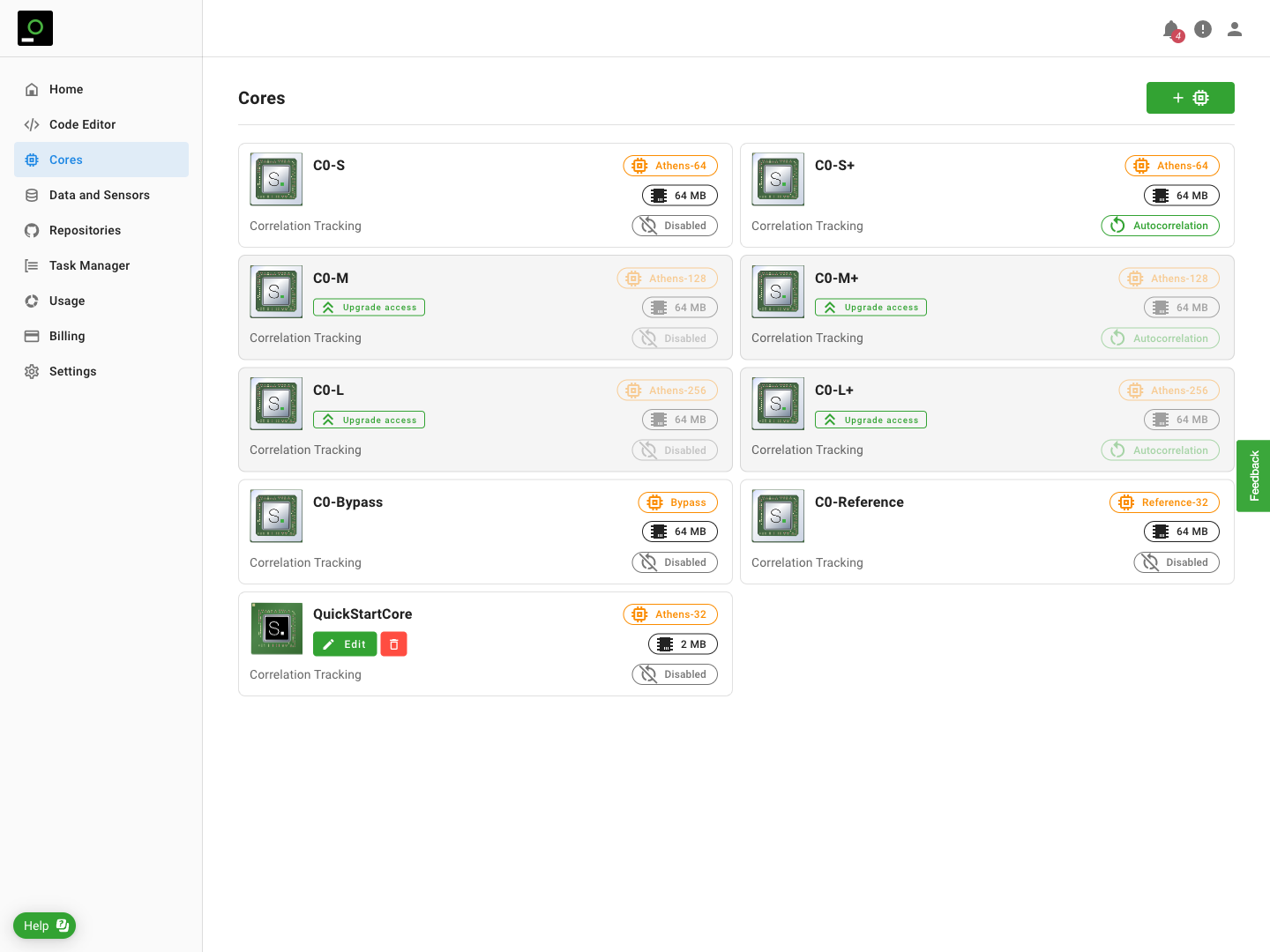 Your Signaloid cloud account gives you access to a number of default Signaloid C0 processor Cores. These Cores provide a good starting point for enhancing your applications with uncertainty tracking. You can also create custom Signaloid C0 Cores that are optimized for your specific application workload and extract the most out of the Signaloid Cloud Compute Engine. All applications run on the Signaloid Cloud Compute Engine can use one of these processor cores.