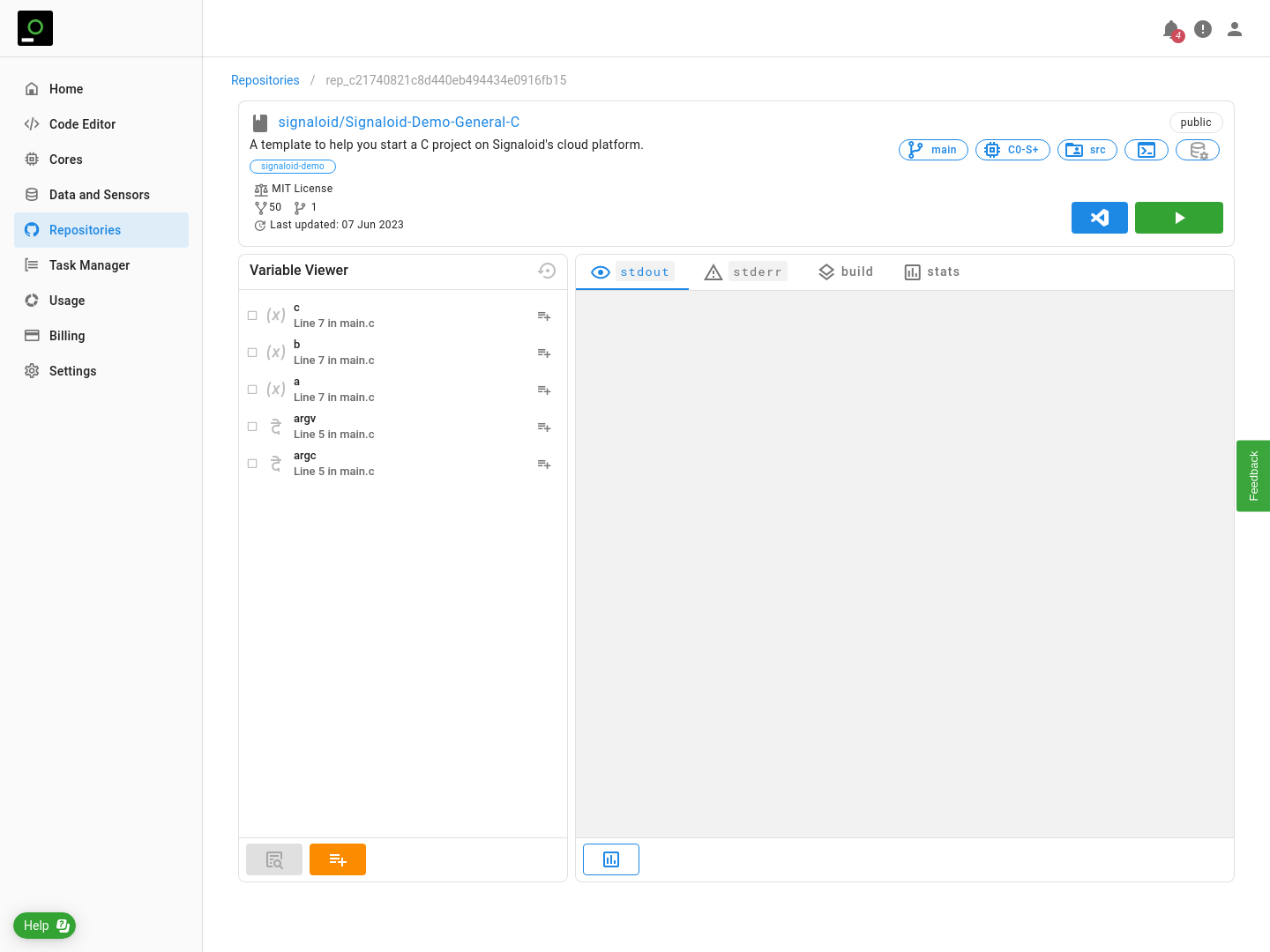 - Signaloid Cloud Compute Engine clones your repository and builds it at the specified build directory.