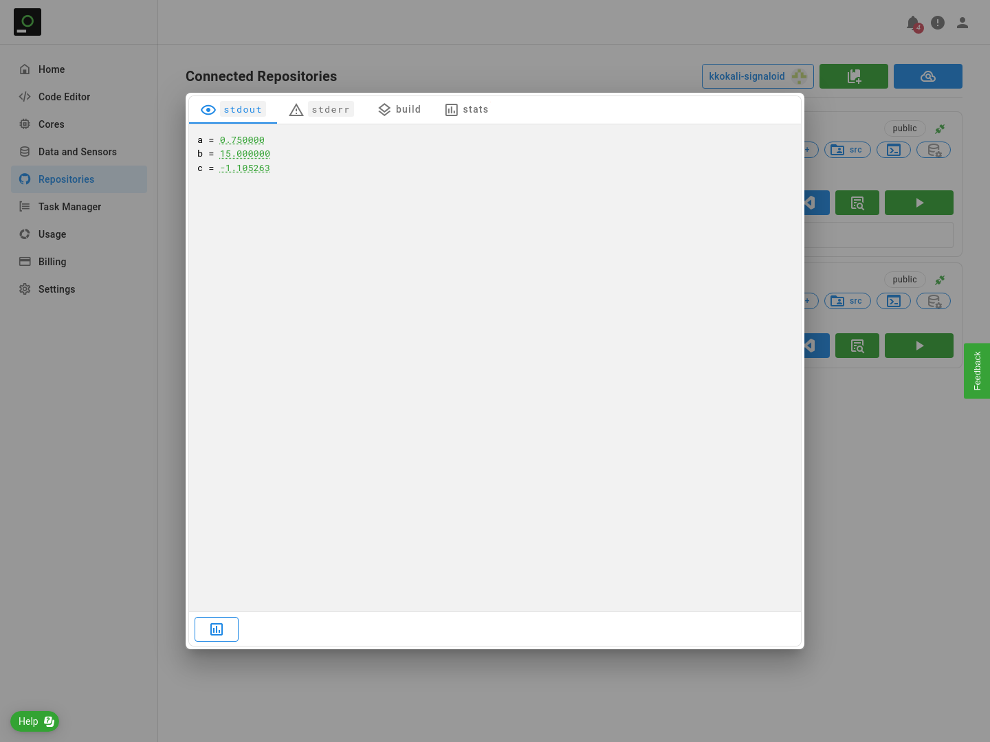 - Signaloid Cloud Developer Platform receives the results of the execution which is shown to you.